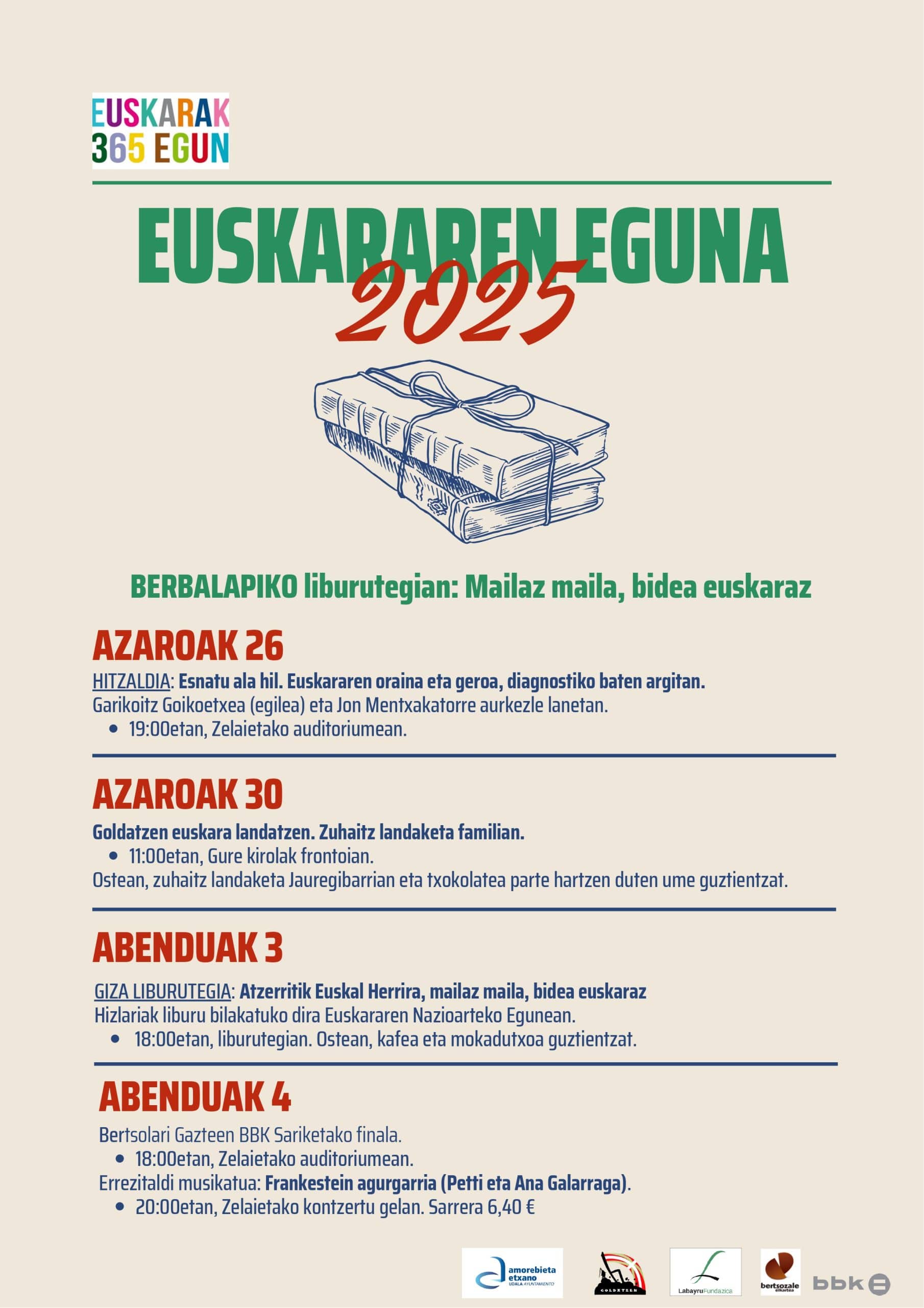 Con motivo del Día Internacional del Euskera, entre el 26 de noviembre y el 4 de diciembre, charlas, plantación de árboles, Biblioteca Humana, bertsolarismo y espectáculos culturales serán el eje del programa de celebraciones, reafirmando el compromiso con el euskera.