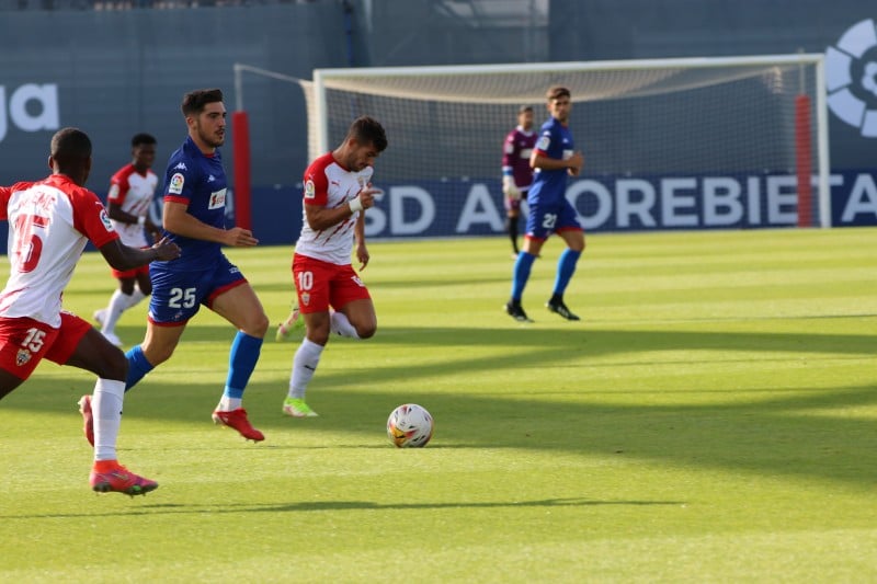 Antes del arranque del choque, se han vivido momentos de emoción en Lezama, con un aurresku de honor y un minuto de silencio en memoria de los socios y socias de la SDA fallecidos durante la pasada campaña. El 0-1 no ha tardado en llegar. Y es que Curro ha marcado un auténtico golazo en el minuto 3 de partido para adelantar a los almerienses en el electrónico. Pero los azules, en el estreno de la primera equipación, han protagonizado una reacción digna de admirar. La presión de Unzueta ha provocado que Iker Bilbao se hiciera con el esférico fuera del área y fusilara el arco visitante para sellar el 1-1. El autor del último gol de la 20-21, el del ascenso en el Nuevo Vivero ante el Badajoz, firmaba la primera diana de los zornotzarras en LaLiga SmartBank.