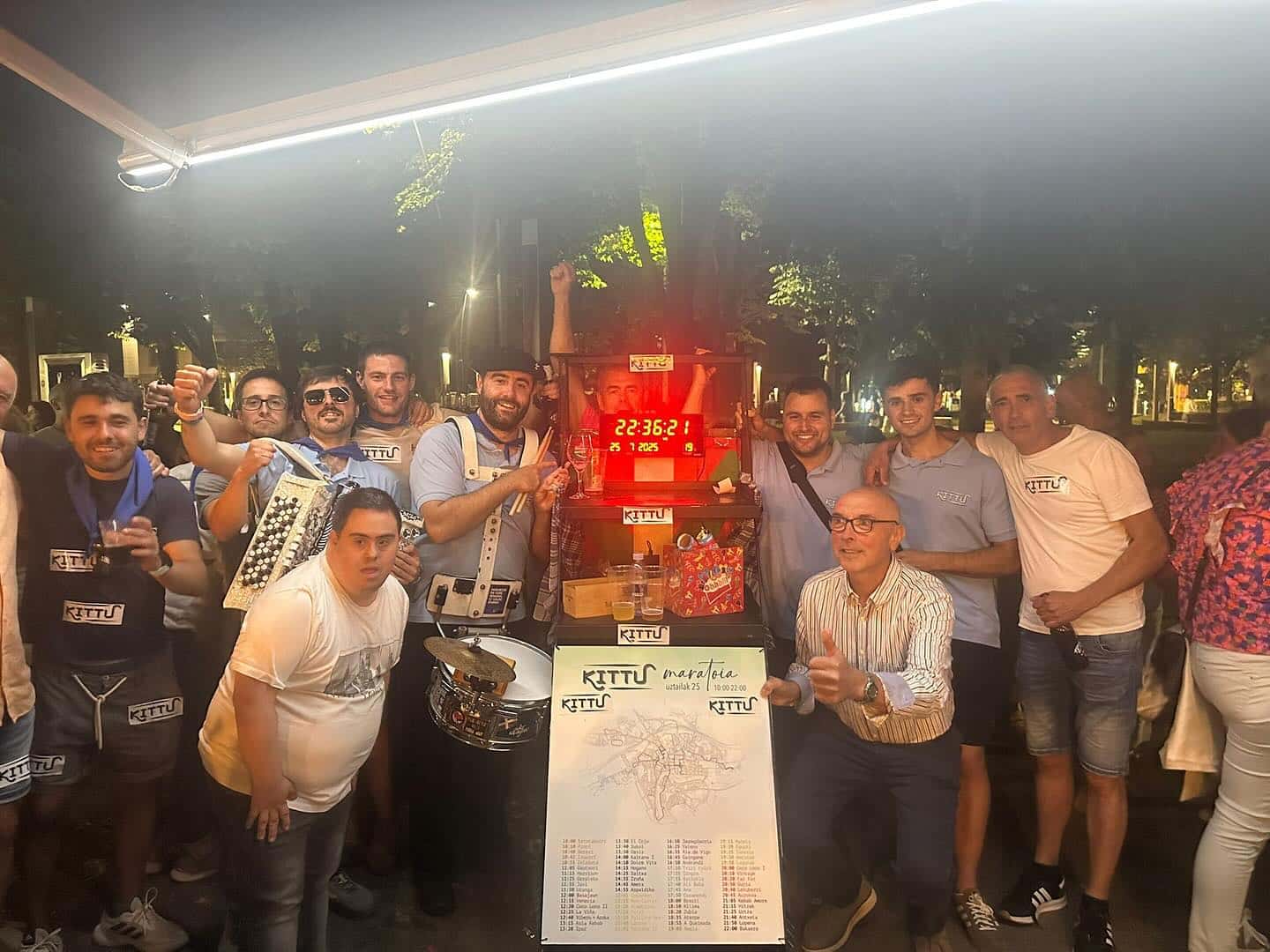 Santiago eguna aukeratu zuten Kittukoek erronka berri bat aurrera eramateko: “Kittu Maratoia”, 12 ordu musika jotzen tabernaz taberna. Larrako Errotabarri tabernan hasi ziren goizeko 10:00etan eta Lopena tabernan bukatu zuten 22:36:21etan, hau da: 10 ordu, 36 minutu eta 21 segundu doinuak jotzen eta alaitasuna eramaten gure herritik zehar.