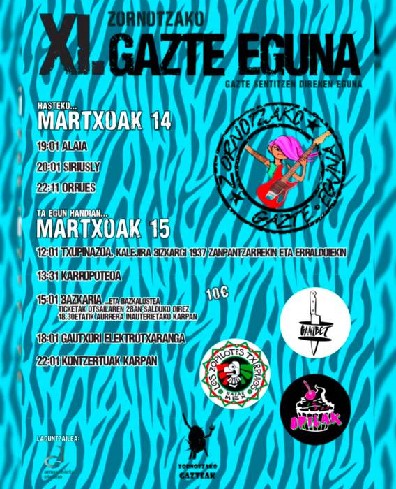 El 15 de marzo tendrá lugar la XI edición del Gazte Eguna de Amorebieta. Los tickets para la comida se venderán el 28 de febrero a partir de las 18.30 horas en la carpa que instalarán para los carnavales.